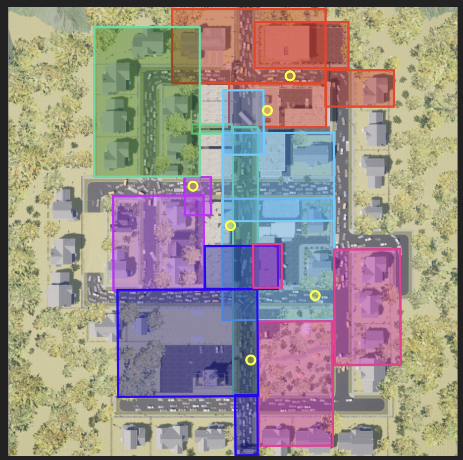 Moved all interiors and exterior builds and props into dynamically loaded / unloaded sublevels based on player path.